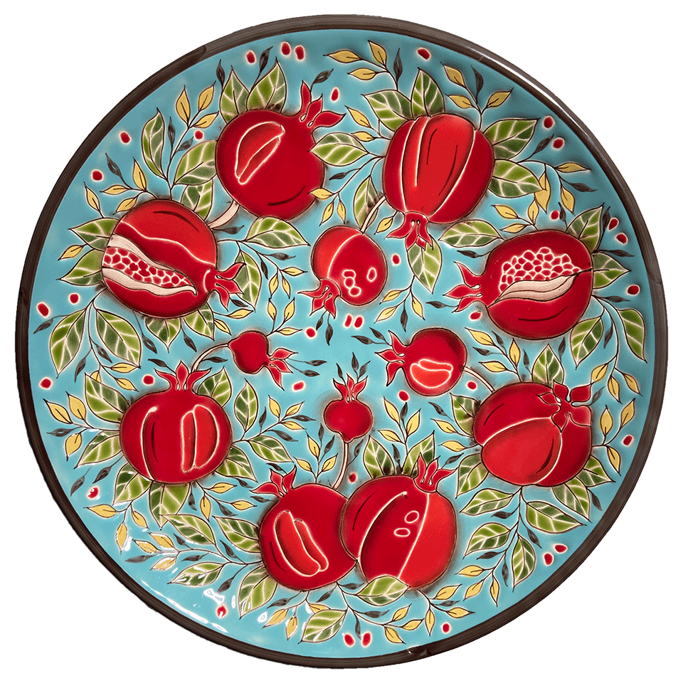 A ceramic plate, entirely handmade, from the "Pomegranates" series.