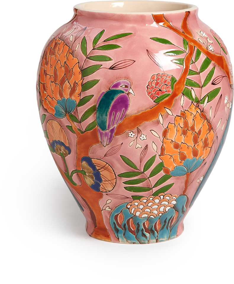 A ceramic vase from the tropical series. The price is for a 21.5 cm vase; the final price depends on the chosen shape.
