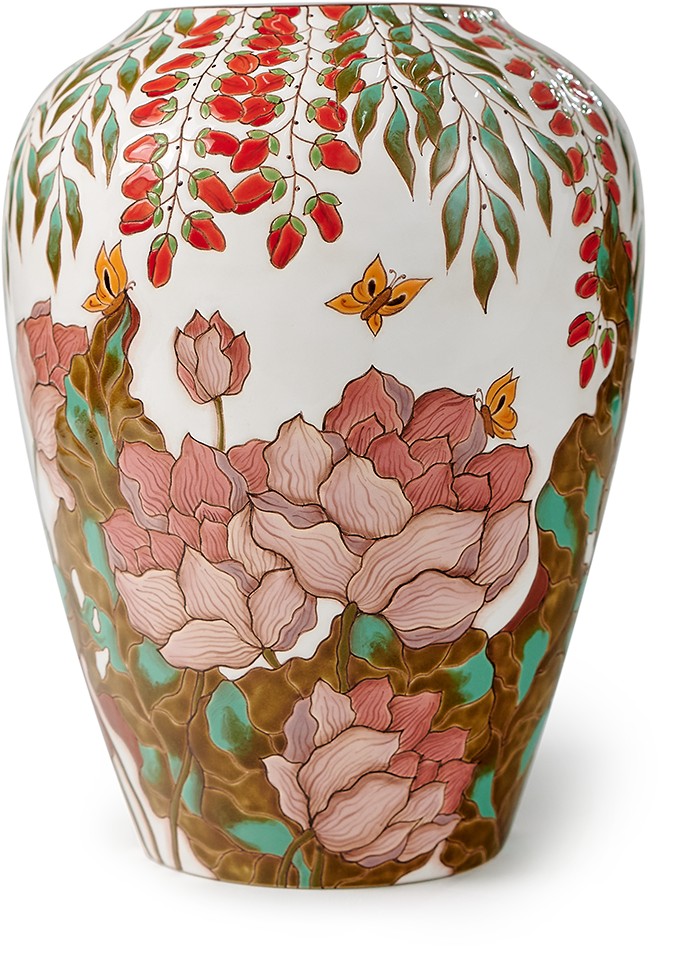 Ceramic vase with tropical motifs. Price is for a 28 cm vase; final price depends on the chosen shape.