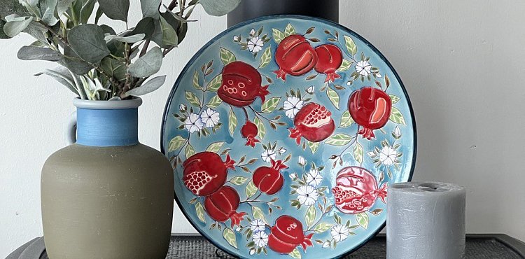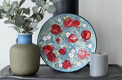 A ceramic plate, entirely handmade, from the "Pomegranates" series.