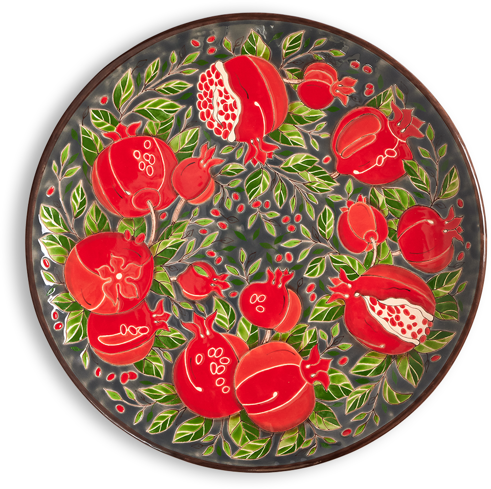 A ceramic plate, entirely handmade, from the "Pomegranates" series.
