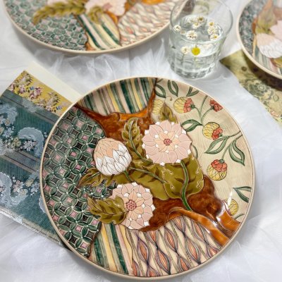 A ceramic plate, entirely handmade, from the "Patchwork" series.