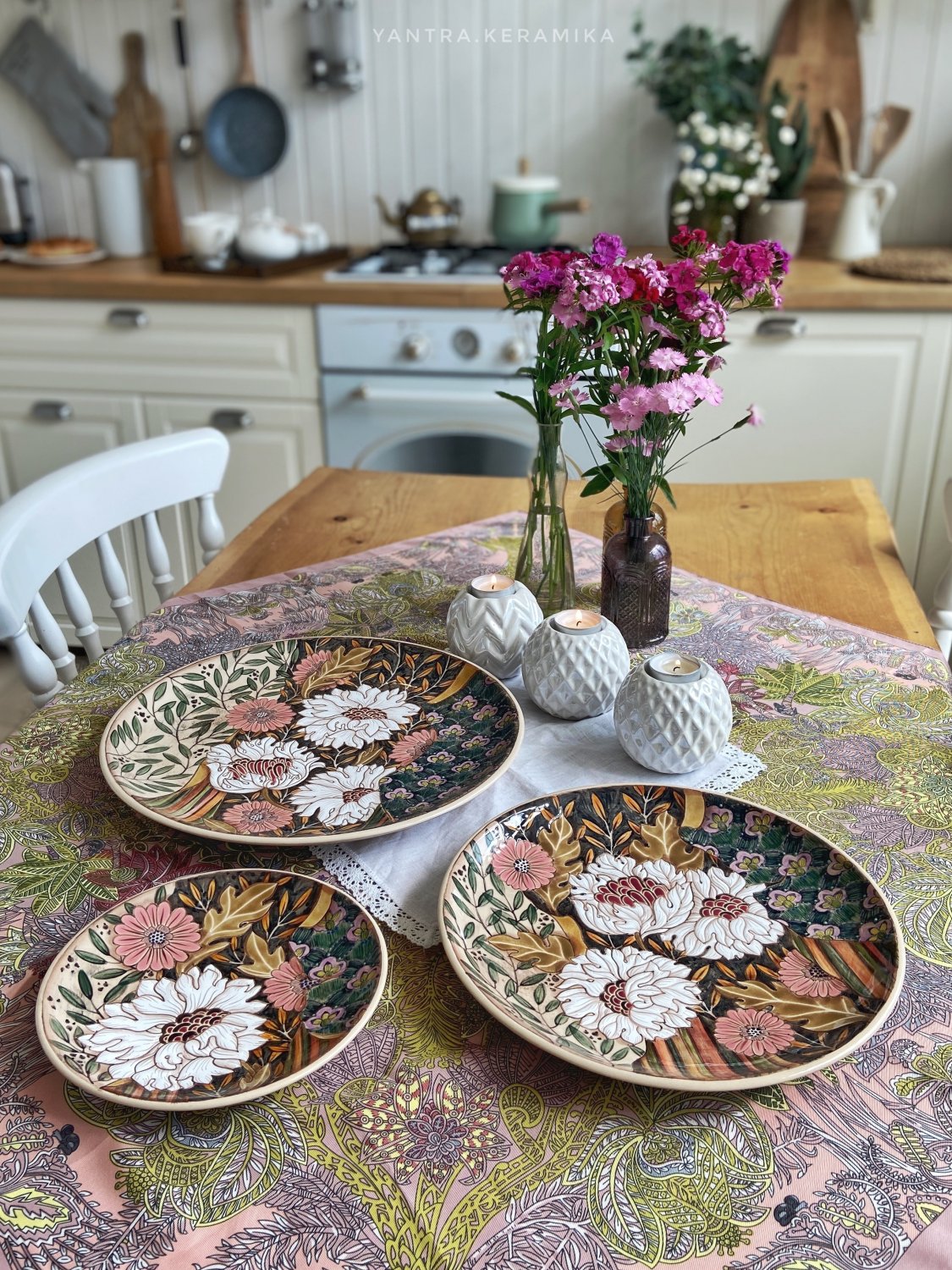 В среднем роспись одной тарелочки занимает от 3 недель, в зависимости от сложности рисунка.