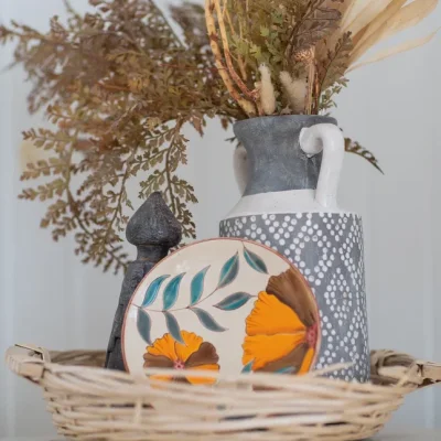 Ceramic plate entirely handmade with floral motifs.