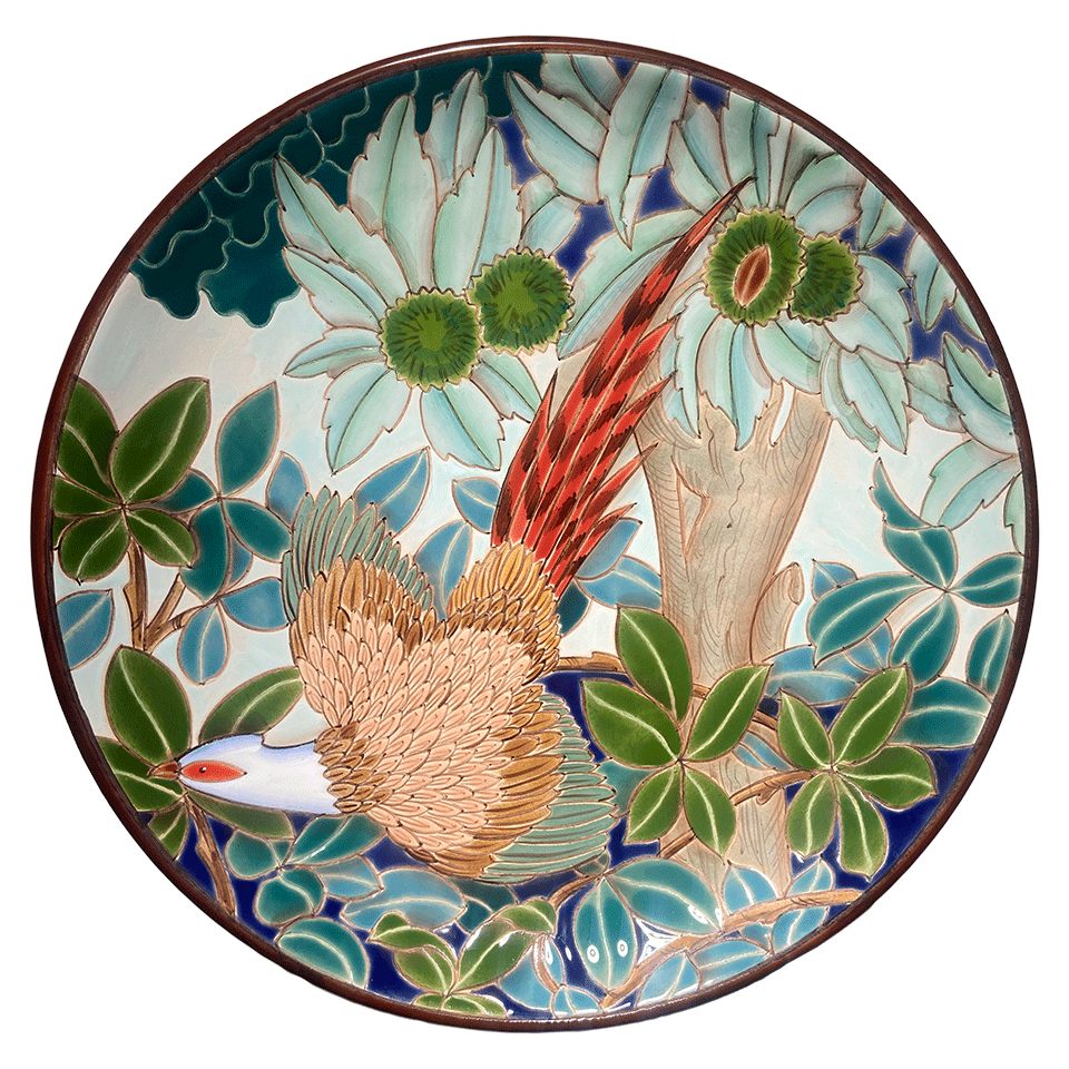 A ceramic plate entirely handmade from the "Birds" series.