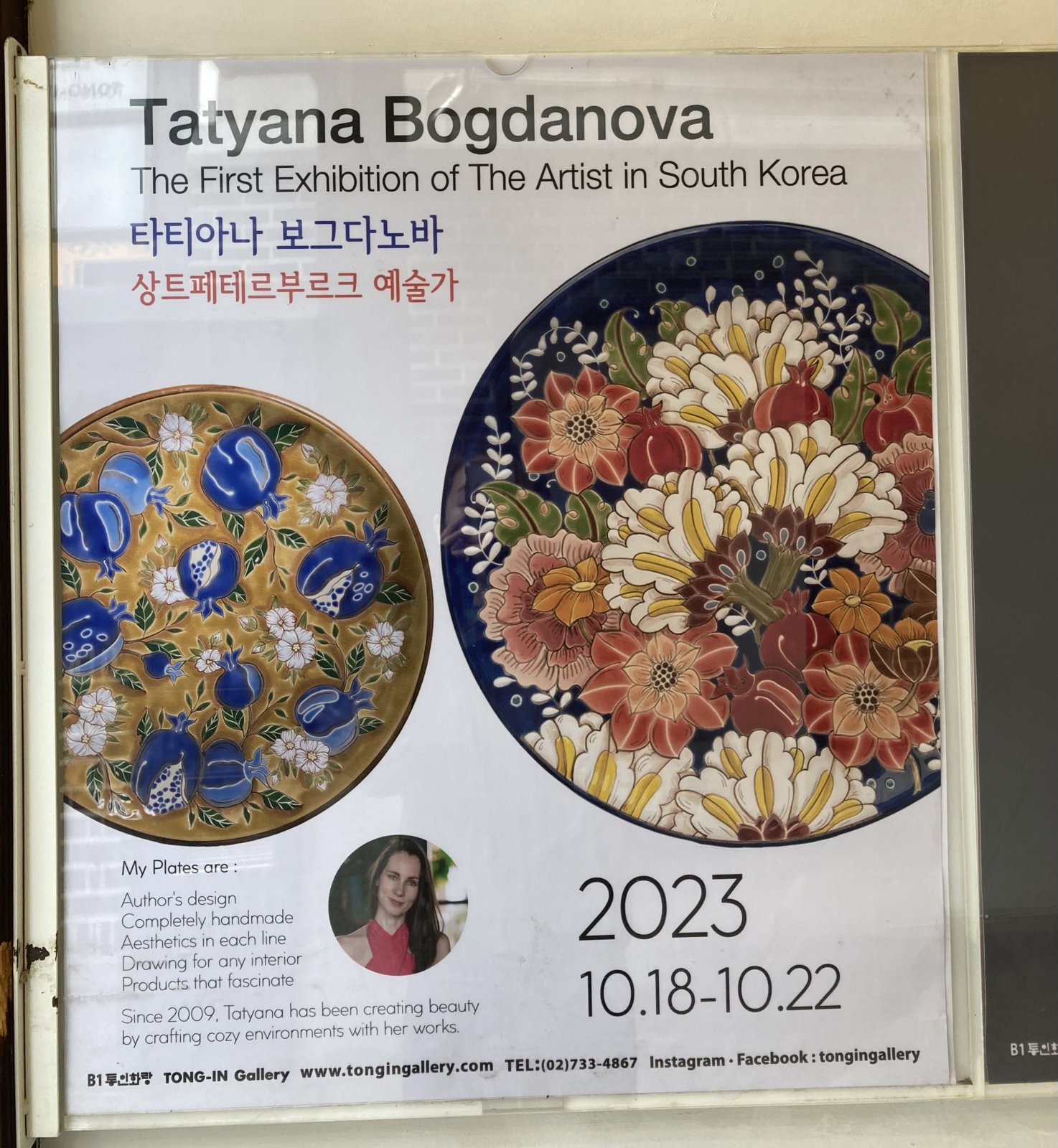 When my husband and I went on vacation to South Korea, we found the Tong-In Shop. A metal plaque on the floor announced that it opened in 1924. And for almost a century, it has been promoting and distributing ceramic art worldwide. Exhibition halls are located on the third and fourth floors. And imagine my surprise when, among the exhibits, I easily found works by famous ceramicists from all over the world, whose work I'd dreamed of seeing in person! My husband decided to show my work to the managers of the Tong-in space, and you already know the result – my plates are on display! This is a great honor and a wonderful achievement for me!