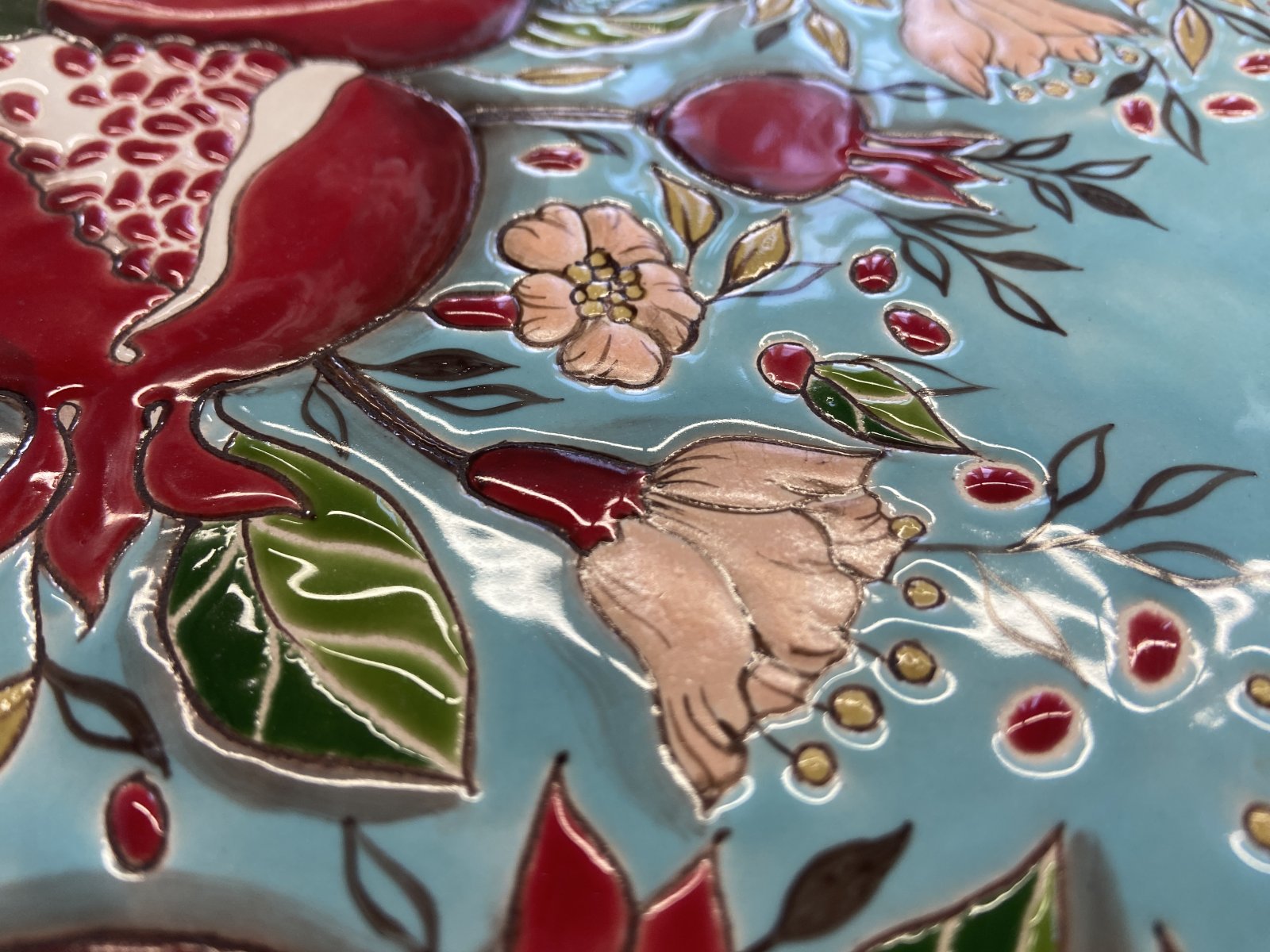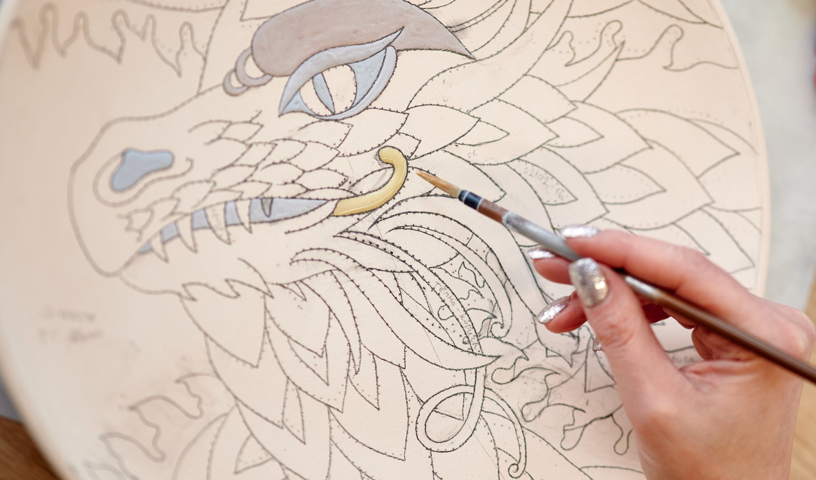 Yantra.Keramika studio founder Tatyana Bogdanova works with a unique, signature technique called glaze relief—a relief glaze. It's a complex, labor-intensive process with many nuances. Thanks to a special technique and secret methods: